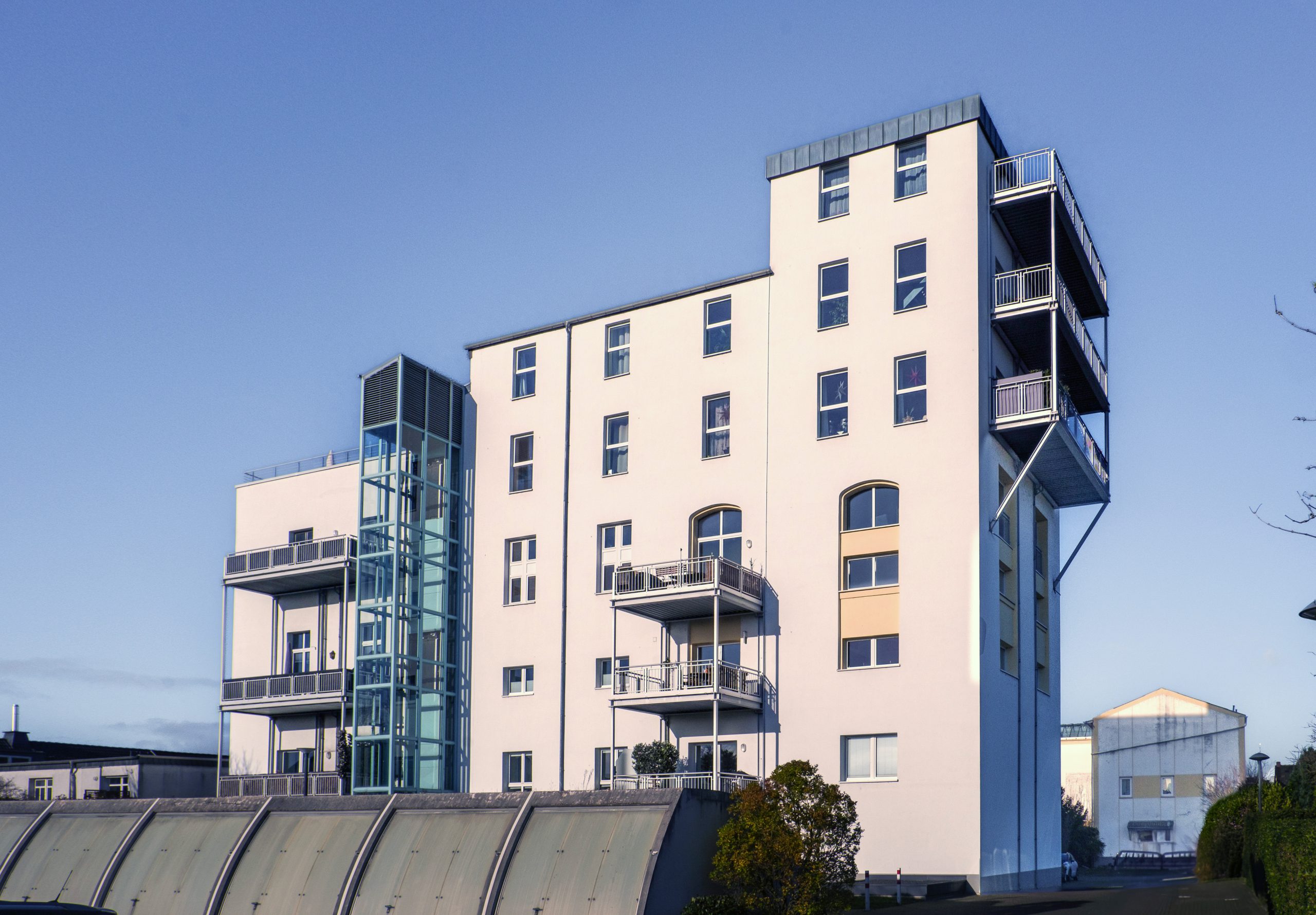 In einem weiteren Bauabschnitt konnten die ehemaligen Verwaltungsgebäude an der Herseler Landstraße in kleine Wohnungen von 30 bis 50 Quadratmetern verwandelt werden.