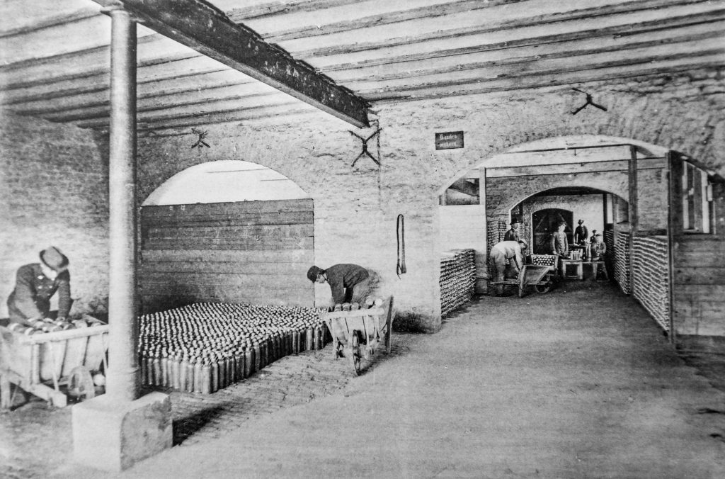 Fotografische Dokumentation, um 1900. Aufnahme 1 und 2: Außenansichten, 3: Abfüllung, 4: Spülhalle, 5: Versandhalle, 6: Krugflaschen-Lager. Aus: Die Roisdorfer Mineralquelle 1876-1901. Zur Erinnerung an das 25jährige Geschäftsjubiläum des Herrn Wilhelm Custor, Düsseldorf 1901.