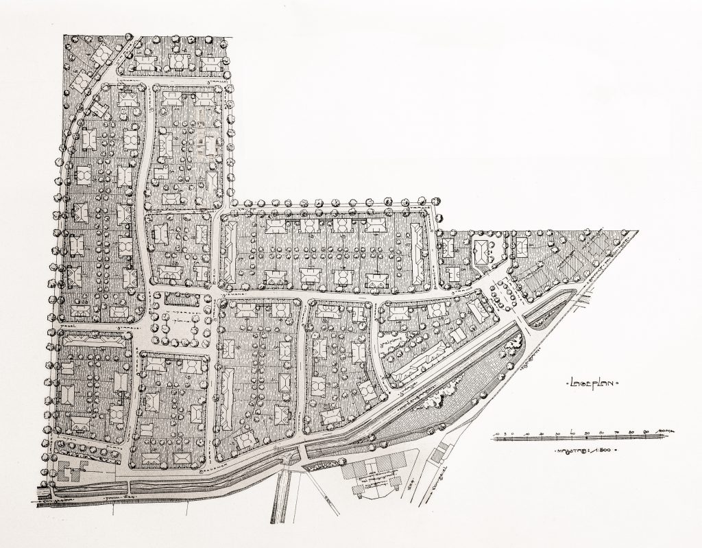 In den Entwurf der Siedlung flossen Ideen der damals populären Gartenstadt-Konzeption ein. Häuser, Gärten und begrünte öffentliche Flächen verbinden sich zu einem landschaftlich komponierten Gesamtraum. Die verschiedenen Haustypen wurden in der Siedlung so verteilt, dass immer neue Anblicke und Gruppierungen entstanden. Die leicht geschwungenen Straßenzüge vermitteln den Eindruck einer historisch gewachsenen Ortschaft und verkürzen raffiniert die Blickachsen.