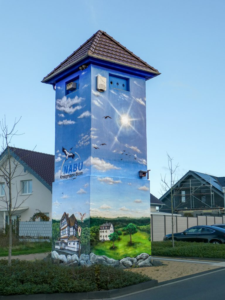 Besonders gelungen ist die Umwandlung der Trafotürme in Swisttal-Ludendorf und in Alfter-Gielsdorf. Sie erhielten eine neue Funktion als Artenschutzturm – unter Beibehaltung des ursprüngliches Erscheinungsbildes.