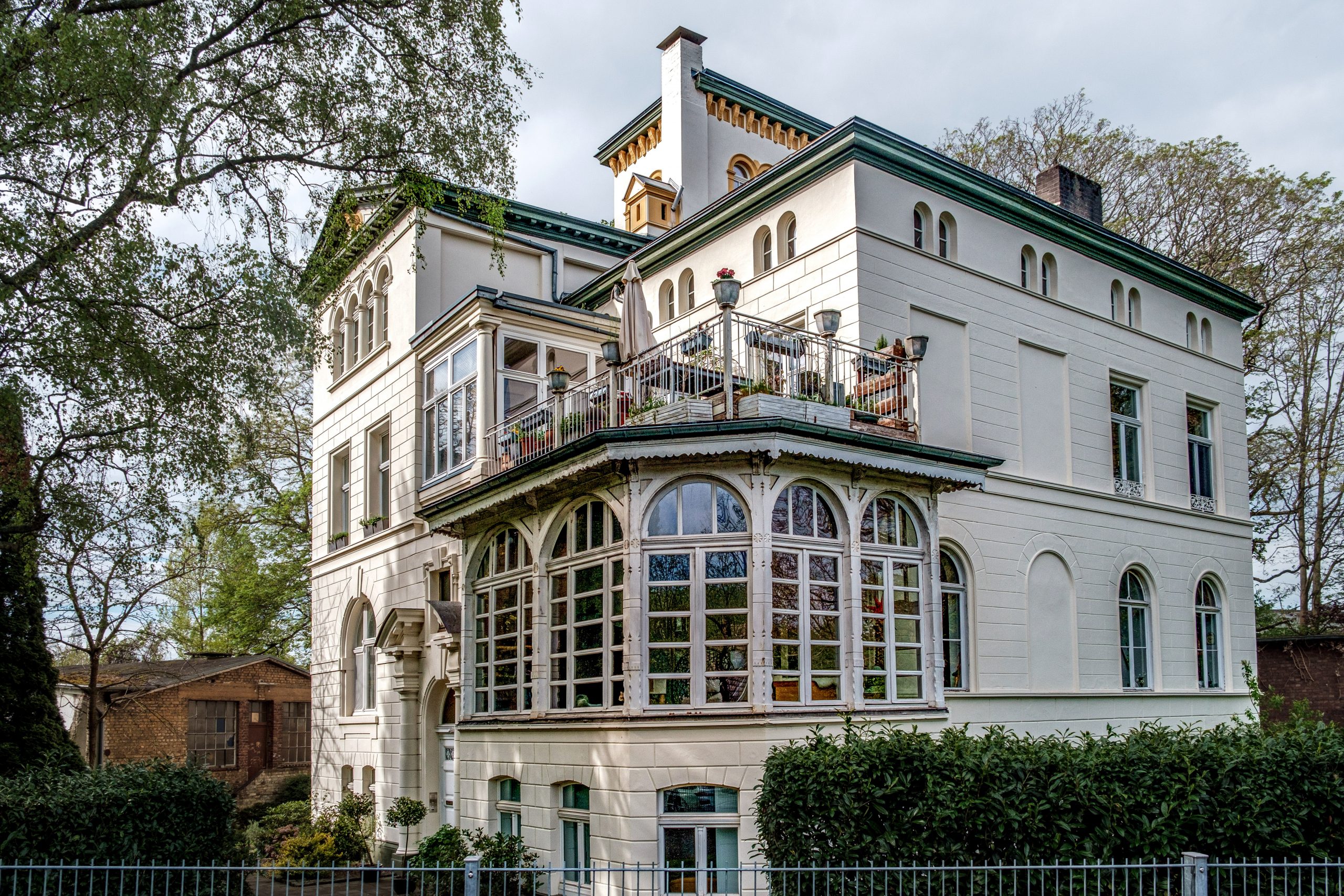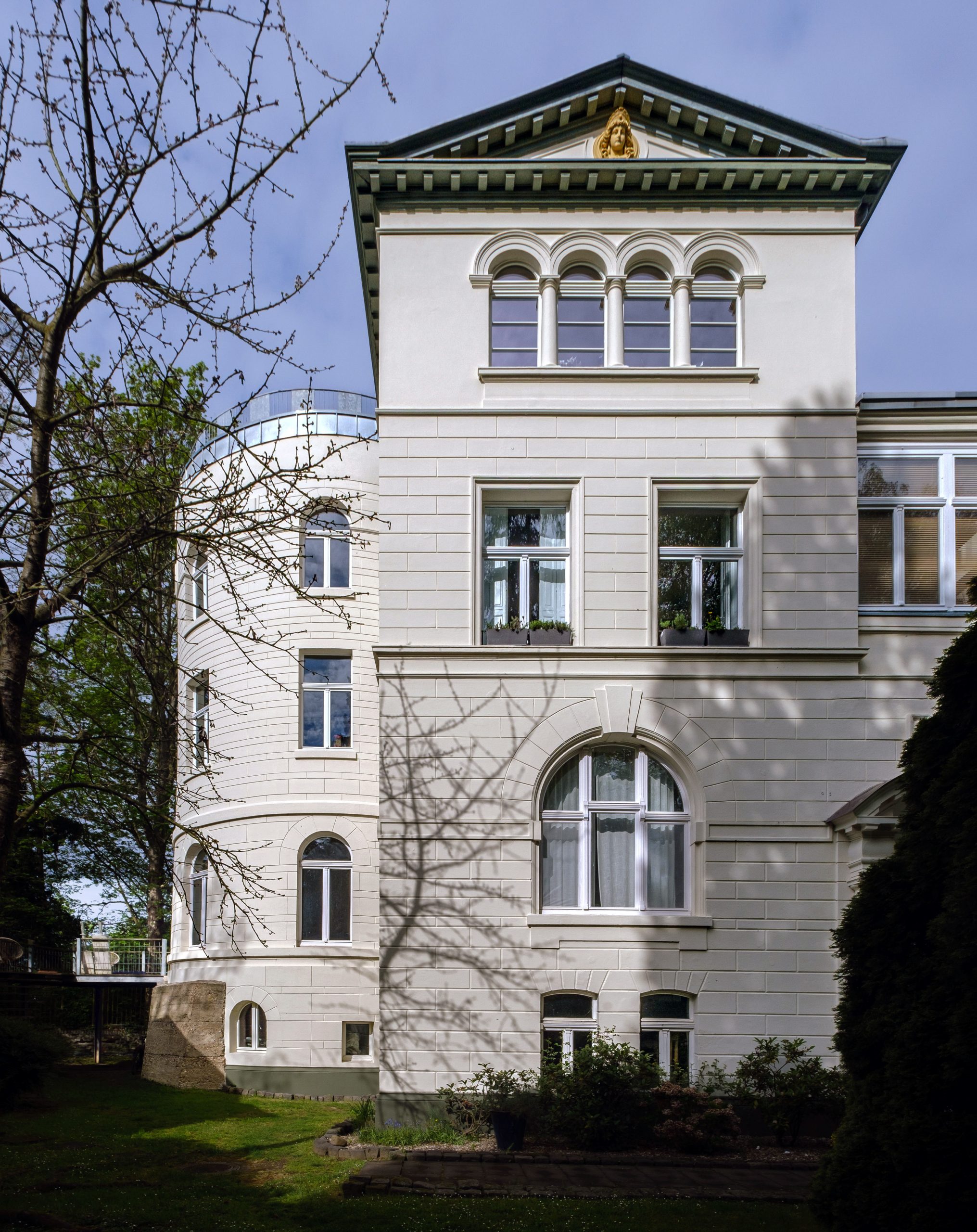 Um 1860 entstand ein stattlicher dreistöckiger Anbau, der die Wohnfläche vervielfachte und das Anwesen zu einer weitläufigen Villa mit grosszügigen Räumen machte. Die Architektur ist abwechslungsreich und vielfältig. Die Baukörper sind asymmetrisch angeordnet, sodass sich aus jeder Perspektive eine andere Ansicht bietet. Der alte Rundturm wurde integriert und blieb als eigenes Bauteil sichtbar. Daneben wurde ein neuer Treppenhausturm hinzugefügt, der die Villa burgturmartig überragt.